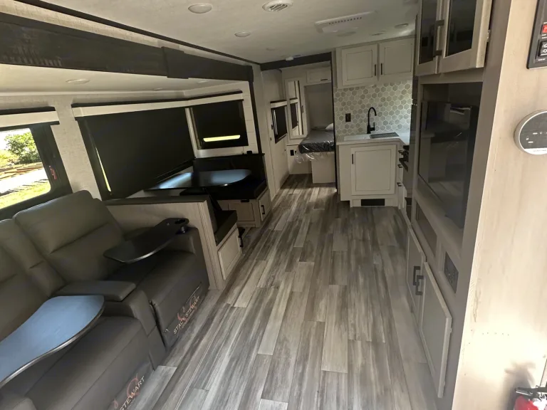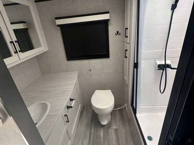This trailer is practically brand new and allows you to camp in luxury. The tankless hot water heater allows you to take showers as long as you want. There’s two comfy recliners in the main living area which make its great to watch movies at night. There is an exterior mount when you want to bring the tv outside to watch movies next to a fire. The bathroom is very roomy which is not like most trailers. This thing is set up for you to get to your spot and relax and all weekend!Ce qui est inclus•Camping Chairs