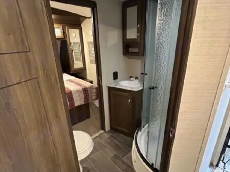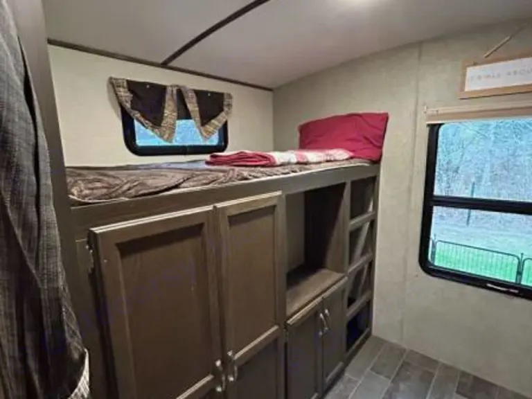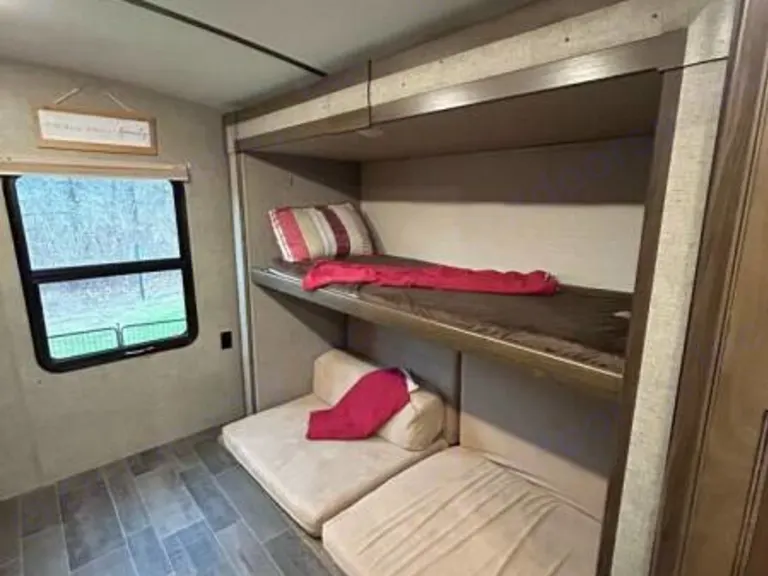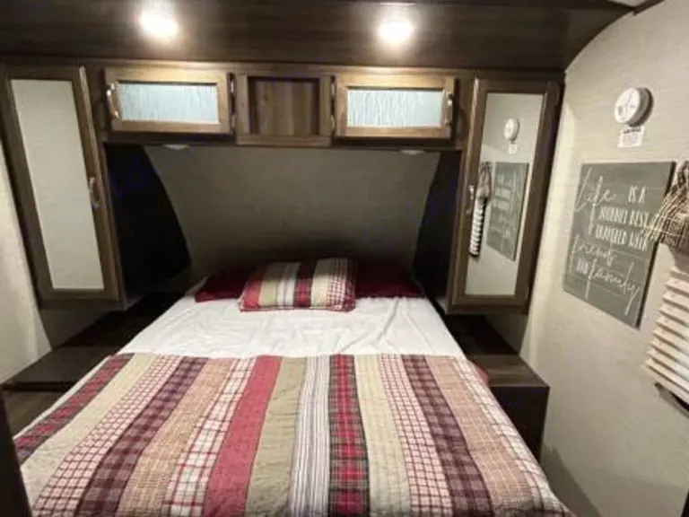 Experience luxury camping with our 2018 Keystone Bullet Premier 34Bhpr. Perfect for families or groups, this spacious RV features two bedrooms, a full kitchen with modern amenities, a cozy living area with entertainment options, and a bathroom with a shower. With its sleek exterior design and comfortable interior layout, you'll enjoy both style and functionality on your road trip adventures. Whether you're exploring the great outdoors or embarking on a cross-country journey, our Keystone Bullet Premier offers the perfect blend of comfort and convenience for your travels.Why Rent With Us?Support: Unlike private parties, we offer support with RV techs on standby to assist with any issues. At Fireside RV Rental, your camping success is our only priority.Professionalism: Managing campers is our job, not a side hustle. We have a full staff dedicated to ensuring your getaway is flawless.Quality: We only rent out campers in pristine condition, with detailed inspections and thorough cleaning procedures after each rental to guarantee your satisfaction.Security: Renting with us means your trip is protected. Avoid the uncertainty of renting directly from private owners who may cancel last minute or provide poorly maintained campers.Choose any of our many RV's for a premium outdoor experience, backed by professional service and support. Book now and step into a world of adventure, comfort, and peace of mind.What is included in my rental? Have no fear, our campers come fully stocked for your ease and convenience.The following list of items will be in the RV for you to use during your trip:1. Pots and pans2. Camp friendly dishware (durable plastic)3. Camp friendly silverware (durable plastic)4. Serving trays5. Oven trays6. Garbage cans and garbage bags7. Air and surface sanitizing spray8. Cleaning supplies9. Hose for fresh water10. Sewer and elimination kit, RV safe toilet paperDon’t have a truck? No problem! We do! We offer delivery, setup, and pick up services with all of our RV’s. When you arrive at the RV, or the RV arrives to you - our dedicated staff of setup professionals will get your rental RV set up, leveled, hooked to power/water/sewer (when applicable), and take you through a full walk through either in person or digitally, to ensure that you have the best experience possible.Questions? Feel free to send us an inquiry today and we will be happy to answer any questions that you could possibly have.