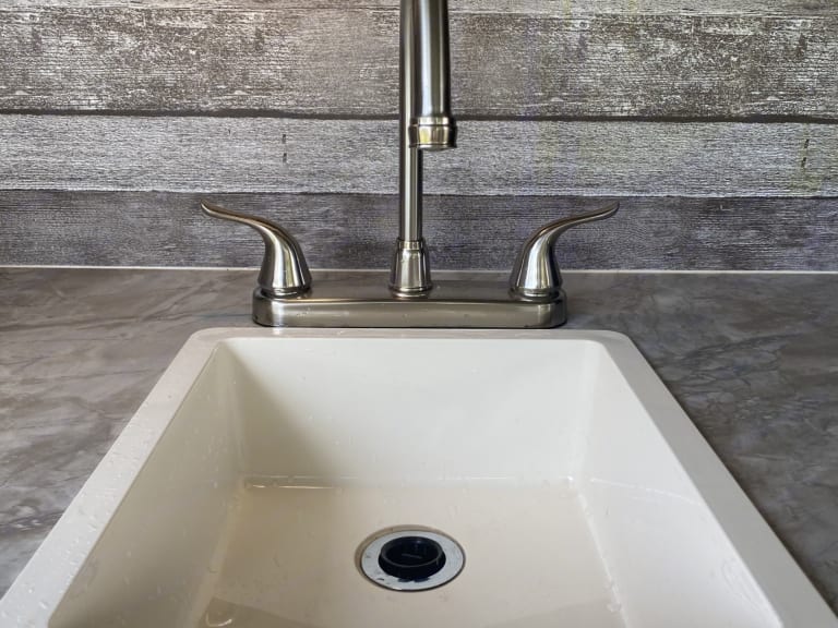 Outside you will find a full outdoor kitchen equipped with a propane grill, sink & fridge! The radio will play inside, outside or both so everyone can enjoy.