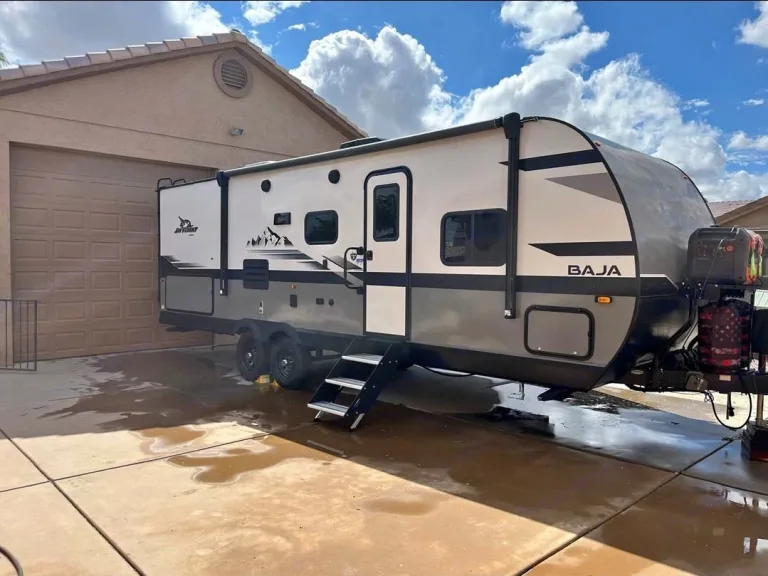 Outdoor awning – Great for relaxing in the shade.Delivery available! We can bring the RV right to your campsite or home for easy setup.Add-ons available:Generator – Great for dry camping or boondocking.Blackstone griddle – Perfect for outdoor cooking and family meals.Whether you’re planning a weekend getaway, a family road trip, or a desert escape, this Jayco Baja Edition has everything you need to make your trip comfortable, fun, and worry-free.Ce qui est inclus• Hitch/Sway bars