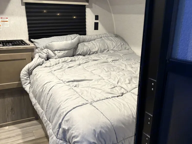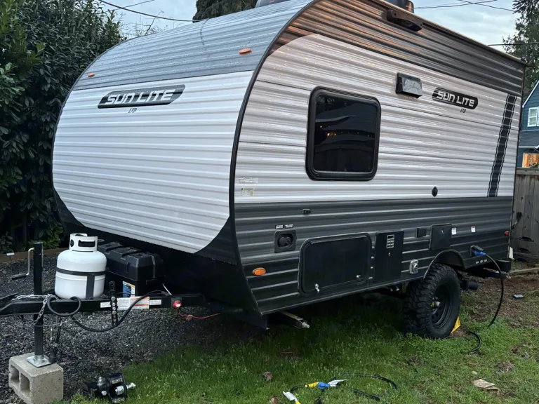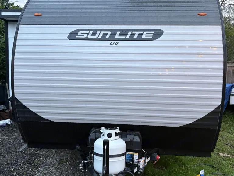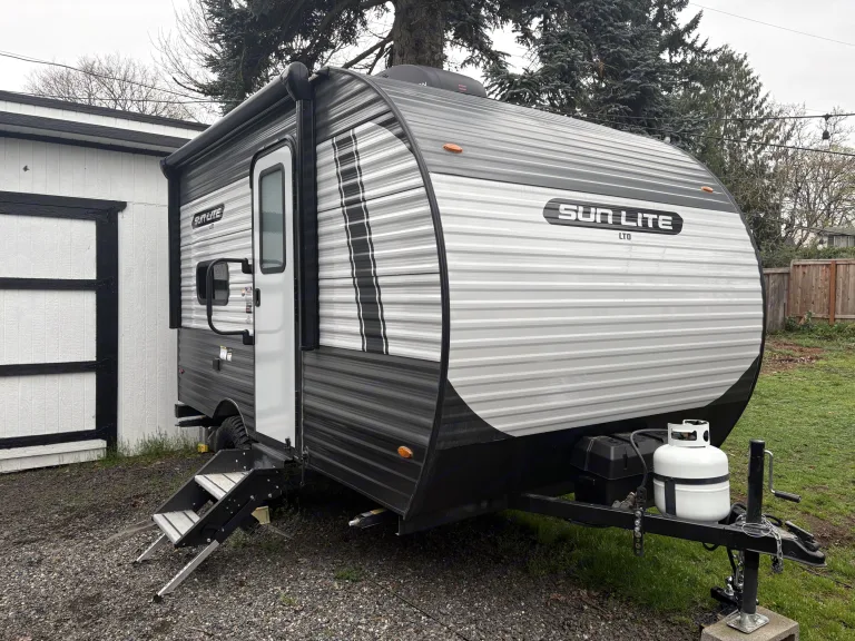Create lasting memories with your whole family in our little Little Sunlite. With it lightweight compact size it can be towed by a variety of vehicles. It features two twin bunks a full size bed and a standard toilet and shower. Outside amenities include a 9ft power awning, LED lighting, and an outdoor shower. Ce qui est inclus• 2 camp chairs