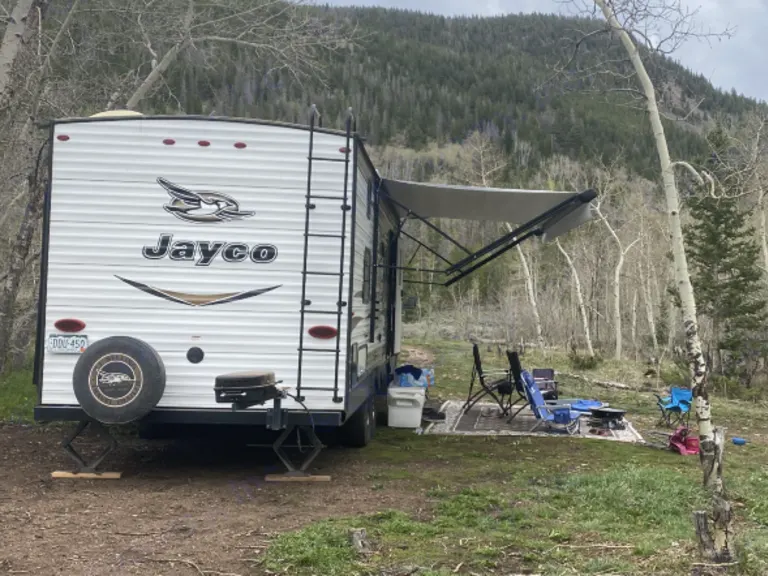 This Jayco Jayflight Bunkhouse is perfect if you are looking to get the family out and about for adventures! This Jayco is unique because it has tons of space and is still great to tow. It has a separate queen bedroom in the front, double bunk beds in the back, shower and toilet room, full slide-out with dinette and couch, and outdoor LED lit awning with speakers. This camper is super spacious inside, so you won't be bumping elbows with everyone when you are getting ready in the morning or getting cleaned up after your adventures outside. It is super easy to set up and will make sure you and your family have a fun getaway together.
