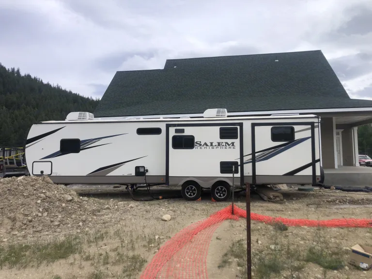This wonderful camper sleeps 7 people comfortably with room to spare. It has a full kitchen, dining area, and living room to make camping a breeze. The large bathroom makes camping comfortable even in those uncomfortable situations. Double air conditioners keep you cool in the summer but also comes with a beautiful fireplace that puts out lots of heat, on top of a furnace should you need to stay toasty warm! Pets are welcome and it is a children’s paradise! Hope you enjoy our great trailer!