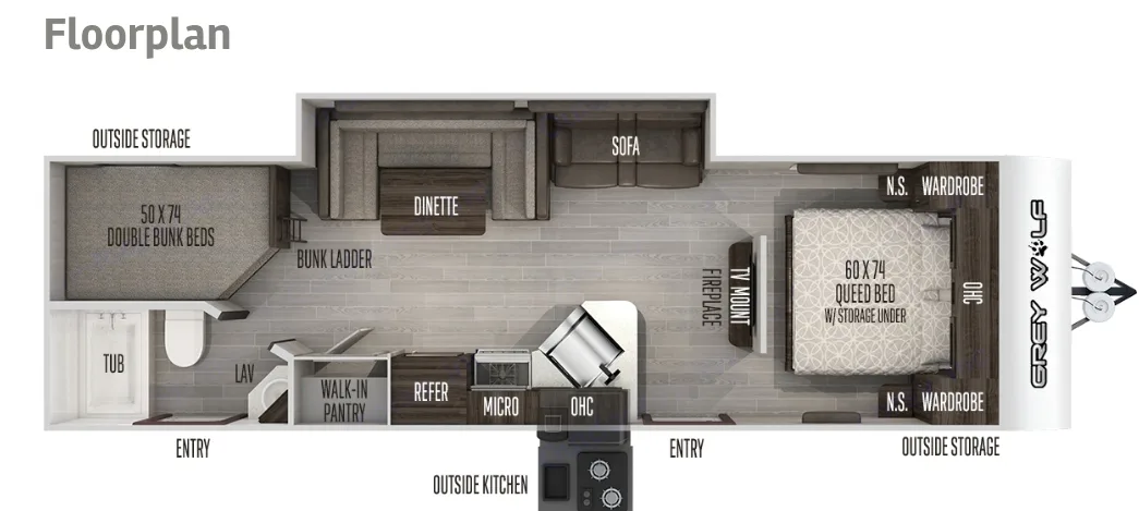 Need a camper that will accommodate your large family? Check out our 2022 Forest River Cherokee Grey Wolf model! It comfortably sleeps 10 with one queen bed, two double beds (bunk style), and a dinette and sofa that each convert into double beds. There's plenty of space in the full kitchen and bathroom plus ample storage for our guests. And if you like cooking outdoors, you'll love the grill and outside refrigerator!This unit also features: Air Conditioner, Heater, Dining Table, Microwave, Stove/Range, Oven, Refrigerator, Kitchen Sink, Inside Shower, Outside Shower, Toilet, Awning, Bike Rack, Solar, Tow Hitch, Extra Storage, Leveling Jacks, TV, Radio, Audio Inputs, and one Slideout.