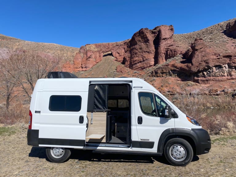 Ida is a brand new 2022 Winnebago Solis Pocket/Dodge Promaster FWD Van. This van features a professional conversion by the experts at Winnebago. She is fully equipped with a full size yet stowable bed allowing for full walk-through capability you won't see in most vans. This van also features a second dinette conversion bed, full swivel driver/passenger seats, sink, refrigerator, stove, AC/Heat, outdoor shower, and tons of storage and gear space.This van is also packed with high-end upgrades such as solar, internal propane storage, internal water tanks, fully enclosed bug netting on all doors, four season insulation and insulated window coverings. The hitch is ready for any additional storage or carriers (bike/ski etc.) that you may want to provide for additional storage. Internal gear storage is L-track ready. Molly Door in gear storage area makes into a door for pet crating capacity built in.Ce qui est inclusBasic dishes and Kitchen utensils
