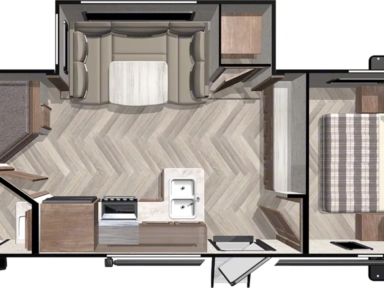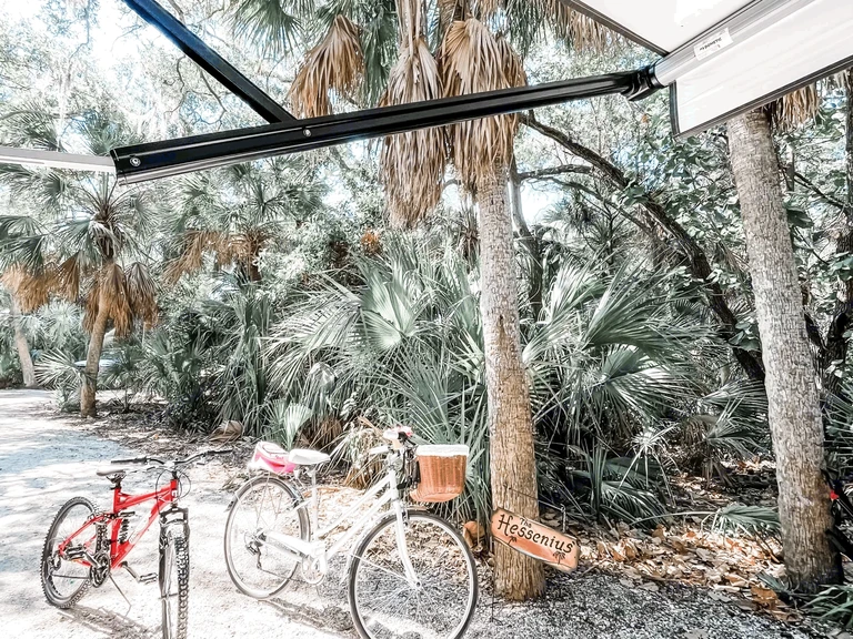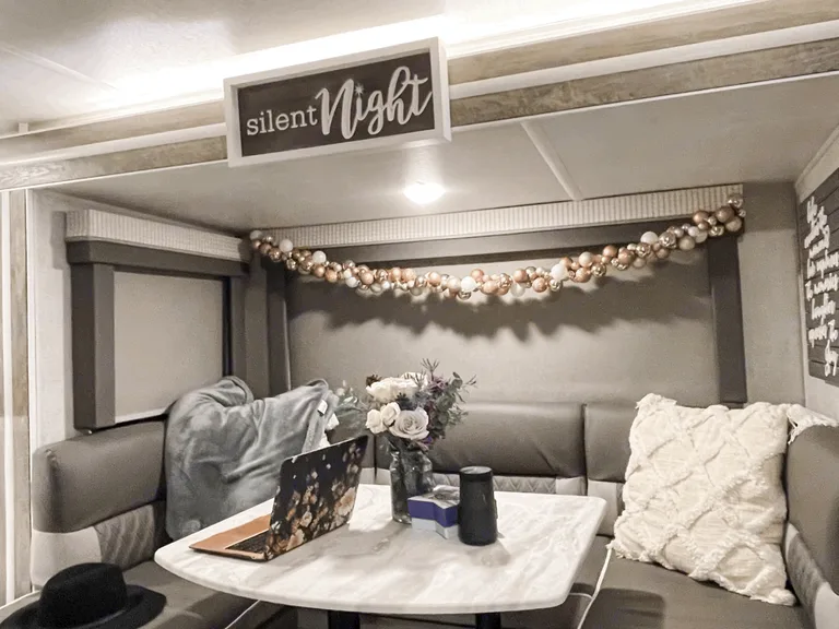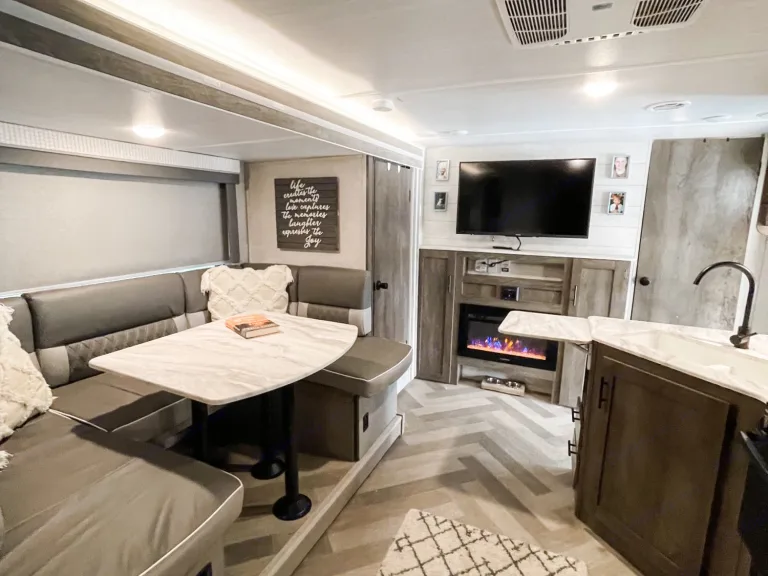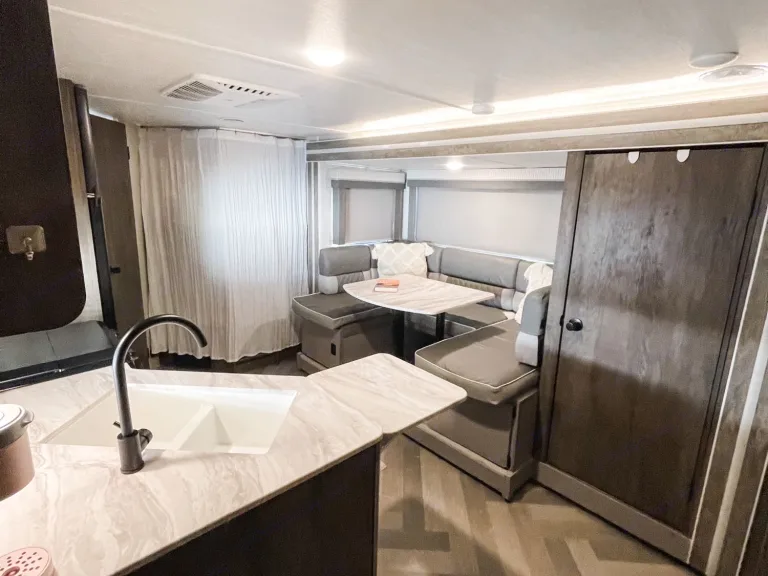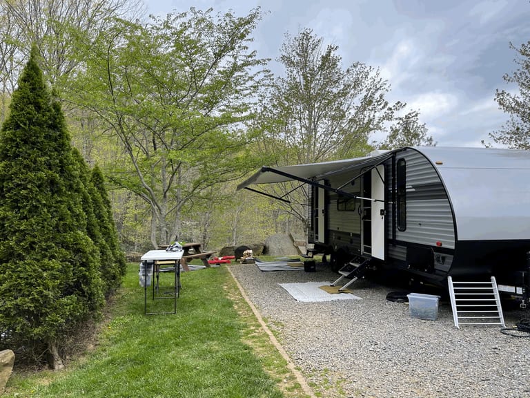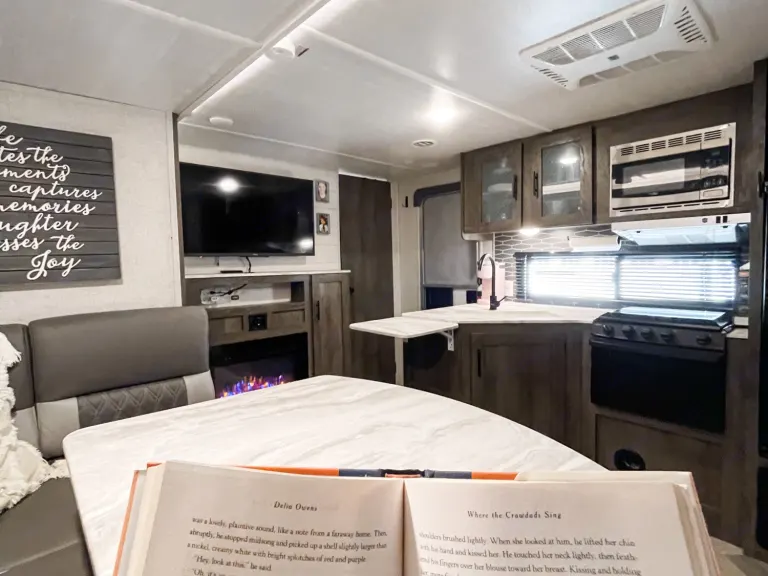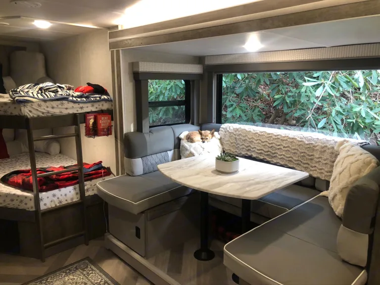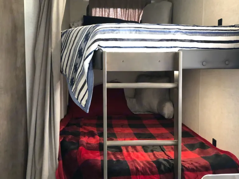 Marsha is our 2021 Forest River Salem CruiseLite 240 Bhxl. She is roomy and well equipped for a fun adventure.There is an extremely comfortable memory foam queen mattress in the front stateroom. Additionally there are two memory foam double sized bunks and a dinette which can convert to a bed. We have a memory foam mattress topper for the dinette if needed! The bunks could fit an adult or two children, same for the dinette.The refrigerator has over eight cubic square feet available with a freezer above along with oversized pantry, plenty of space to fill with all the provisions needed.Ce qui est inclusFresh linens and towels for six are included. The kitchen is well equipped with utensils, cookware and plates. Also included is a single serve Keurig as well as two YETI coffee mugs. Below are additional items included for your convenience.-4 camping chairs