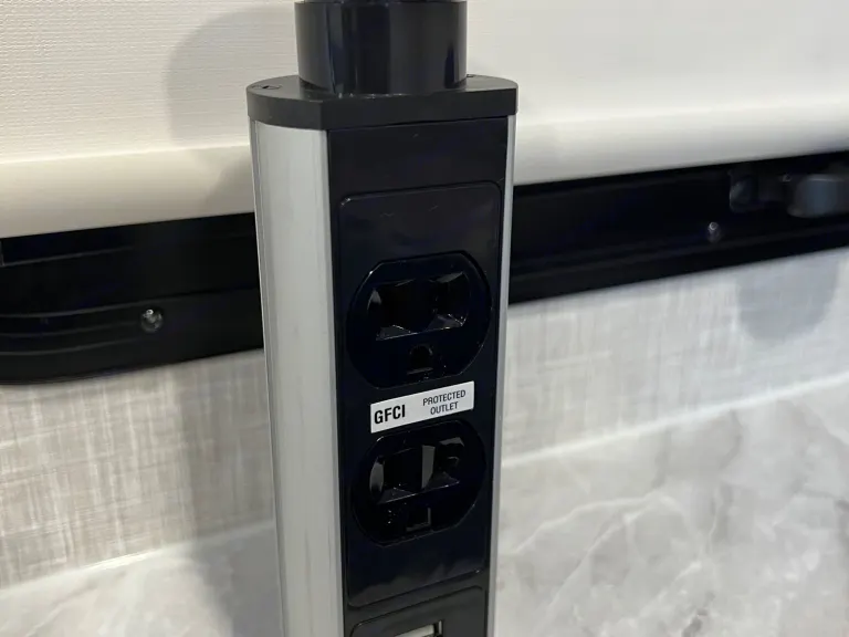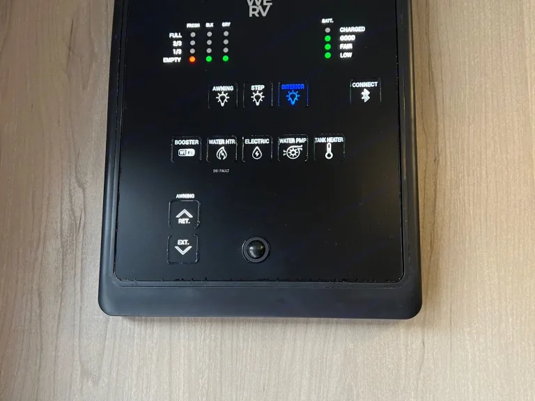 HD TV is your Bluetooth/radio/media which will control the outside speaker as well. TV is a 12 volt so you are able to have it on during dry camping.