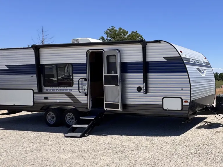Pretty nice space for not having a slide out. Walk around queen is a plus. Bunks are oversized. Upgraded fridge and a/c which is 15btu.