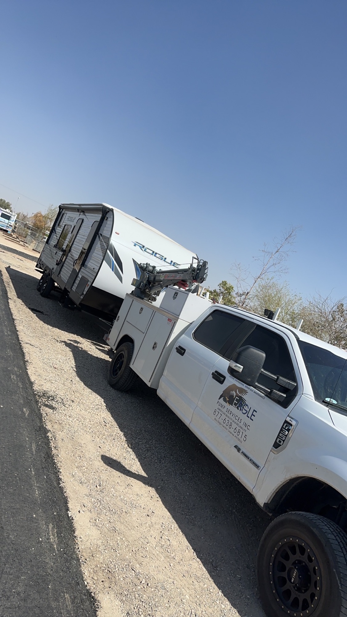 Awesome toy hauler with master bedroom separated by the full sized bathroom. Master bedroom has its own door to go outside so nobody in the other living space is bothered. Ce qui est inclusPillows, fresh sheets, pillows and cases, fresh towels, some chairs a small camping bbq and outside table. Cooking utensils, pots, pans, etc. RecommandationsMust have atleast a 3/4 ton truck with trailer breaks to tow. Otherwise deliver and pick up is an option for local spots. Also there is a two night minimum