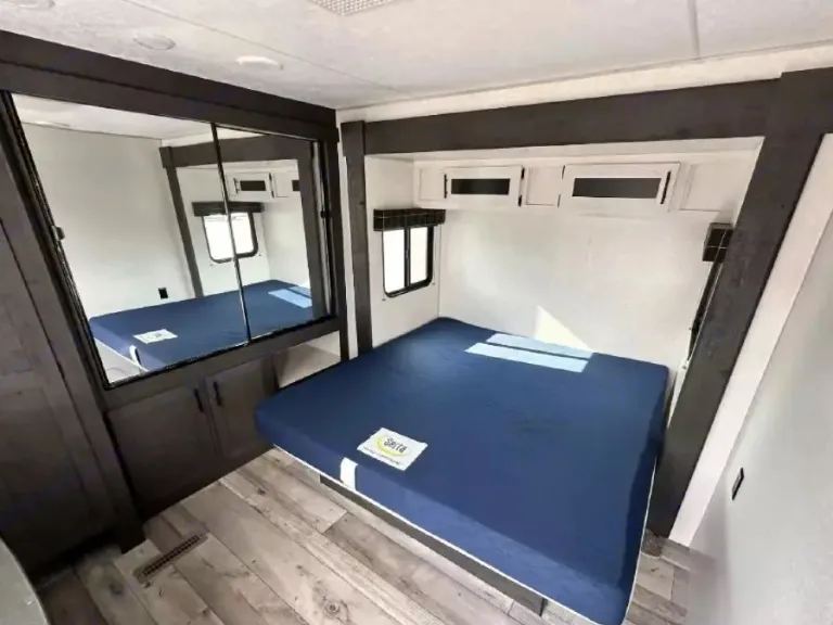 Perfect trailer equipped with a Full-Size Refrigerator, Pantry, Washer/Dryer, Master room Full Size Closet, and 2 King Size Bedrooms. Our trailer provides a cozy space with two private bedrooms with doors. We have covered all our windows and sliding doors with velcro reflective insulation which can be easily taken off and put back on. Our sliding doors provide the perfect natural lighting and outside view from inside the trailer and can easily be covered by the reflective insulation when privacy is needed.Ce qui est inclus•Full size refrigerator